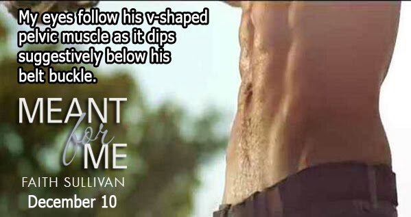 My cheeks burn as he lifts his arms over his head, removing his shirt, elongating every inch of his defined abs. My eyes follow his v-shaped pelvic muscle as it dips suggestively below his belt buckle. My breathing becomes heavy as he stretches, causing his jeans to ride even lower on his hips. My pulse skyrockets as he proceeds to wring the water out of his shirt, flexing his glistening biceps against the rays of the setting sun.